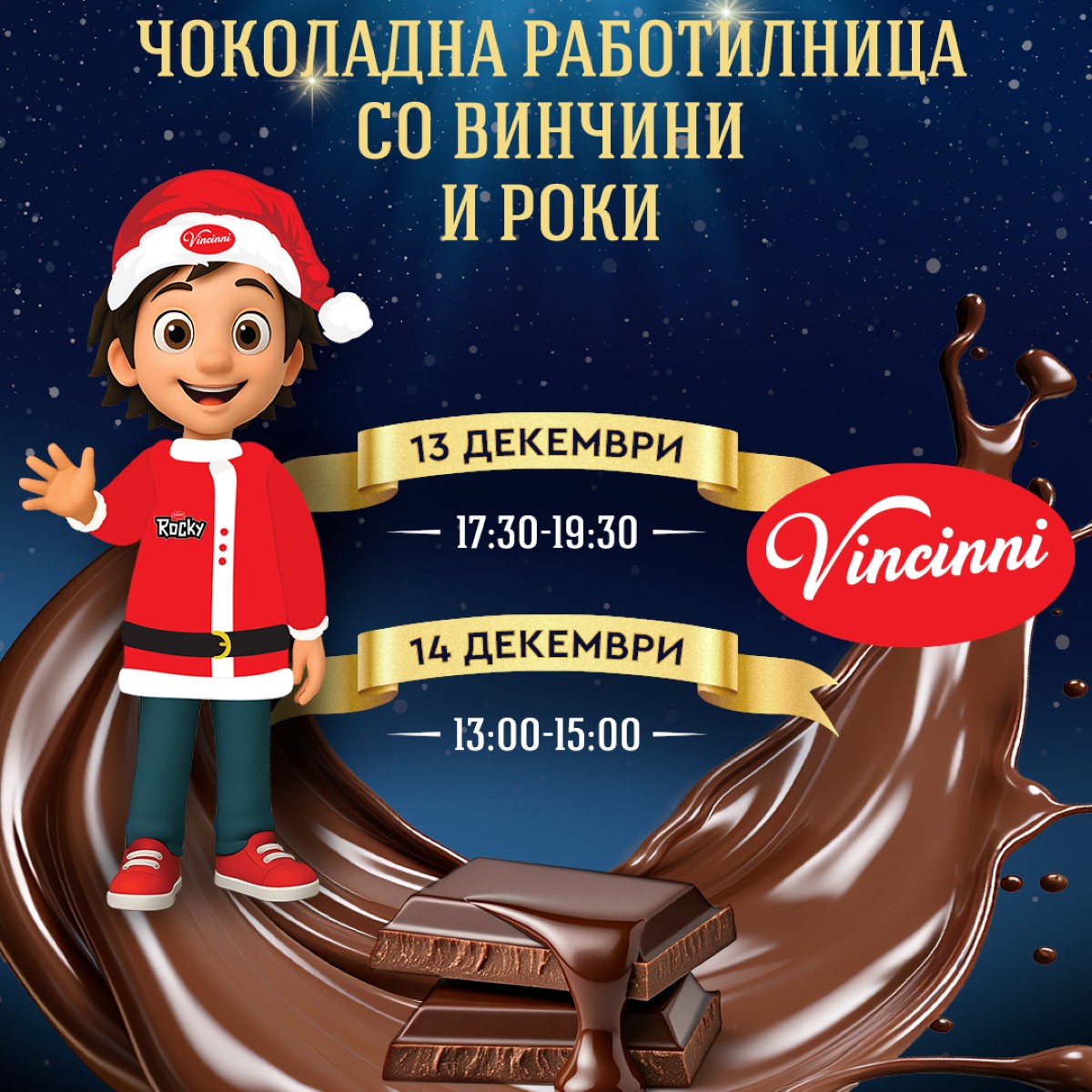 Chocolate masterpieces, lots of fun and sweet friendships await you together with Rocky and Vincini! ✨December 13 (Saturday) from 5:30 PM to 7:30 PM ✨December 14 (Sunday) from 1:00 PM to 3:00 PM See you 🎄